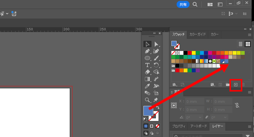 「スウォッチを新規作成」をクリックするか、ツールのカラーのところからスウォッチパネルにドラッグ。