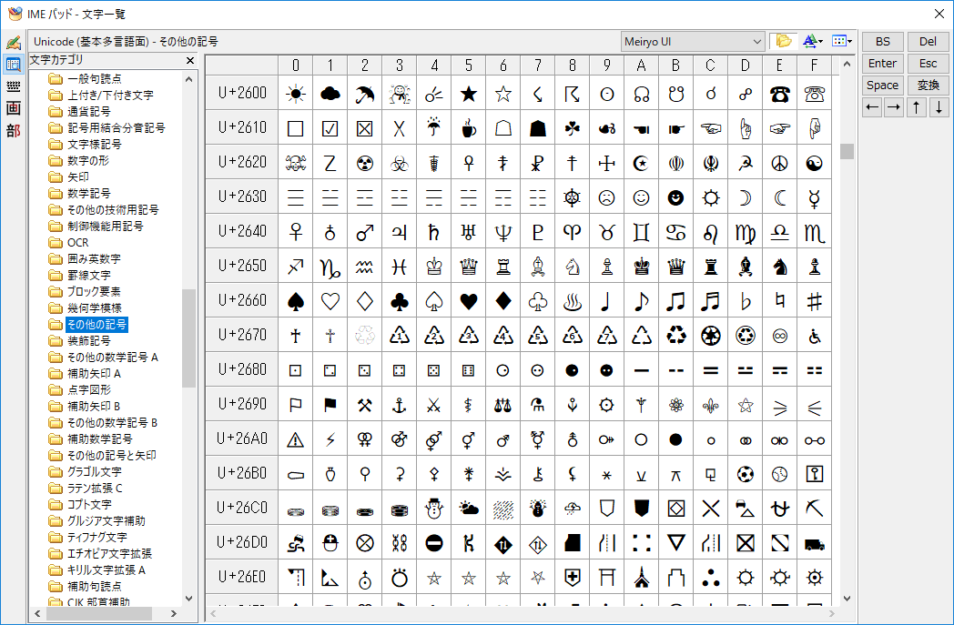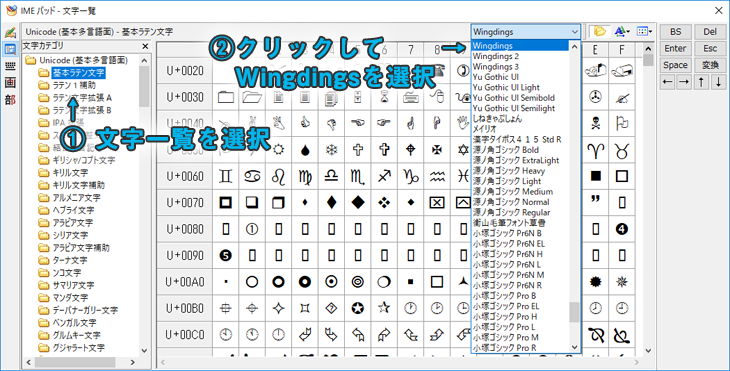 WingdingsとWebdingsの入力方法とキー配置